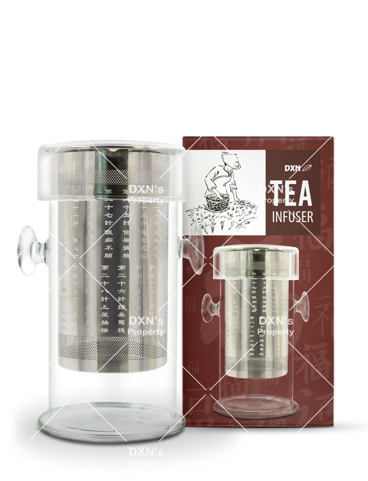 DXN Tea Infuser es una herramienta práctica y bien diseñada que se utiliza para remojar, colar y servir té de una manera más fácil. El recipiente y la tapa del infusor de té DXN están hechos de vidrio borosilicado resistente y el infusor en sí está hecho de acero inoxidable. Un diseño simple pero elegante con dos asas para facilitar su uso. Es adecuado para preparar té tanto en casa como en la oficina.